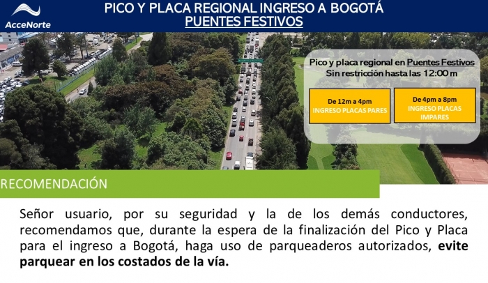 VER MÁSChía, 9 de abril de 2020, La Sociedad Accesos Norte de Bogotá, ACCENORTE SAS, encargada de la ejecución del Contrato de Concesión de tipo Asociación Público-Privada, de iniciativa privada N°001 del 10 de enero de 2017, informa a la opinión pública y usuarios del corredor que: